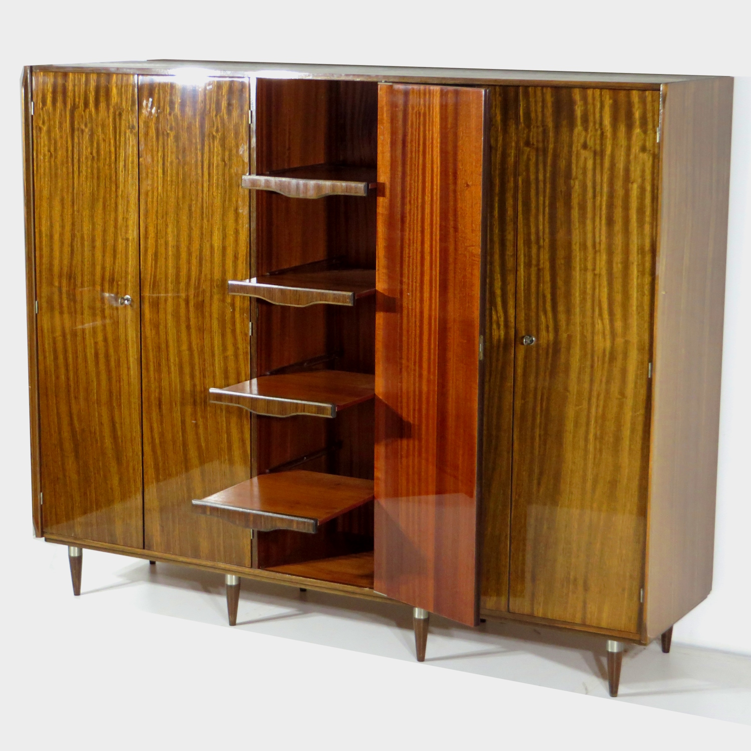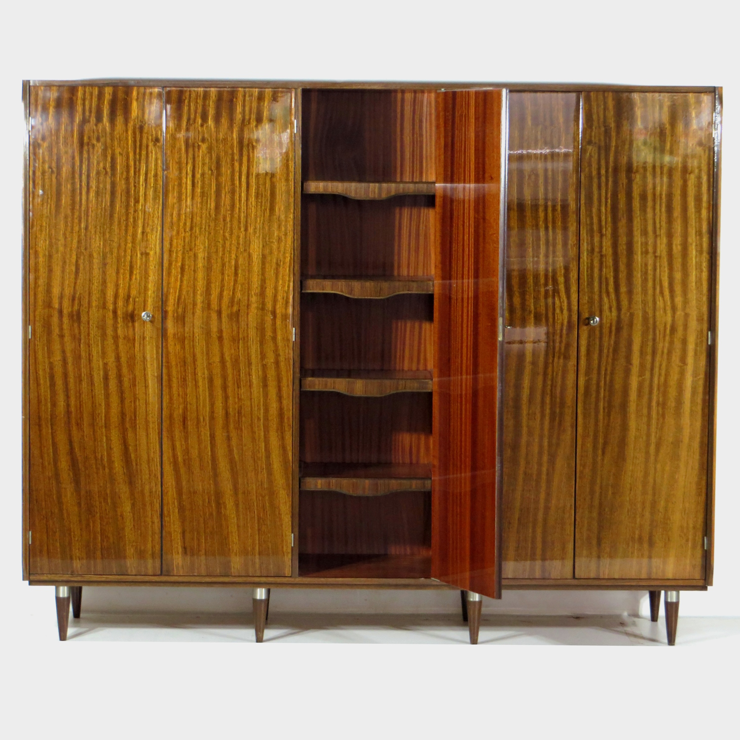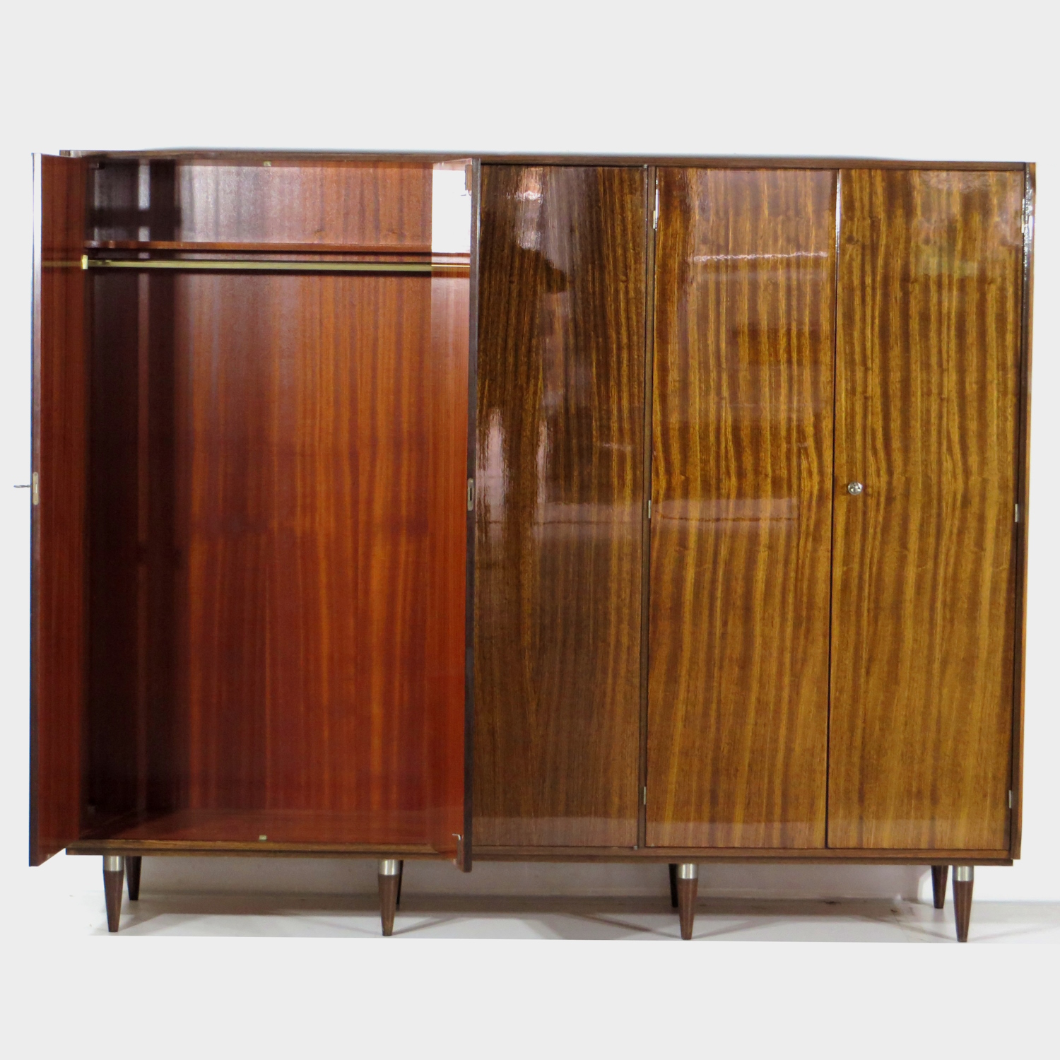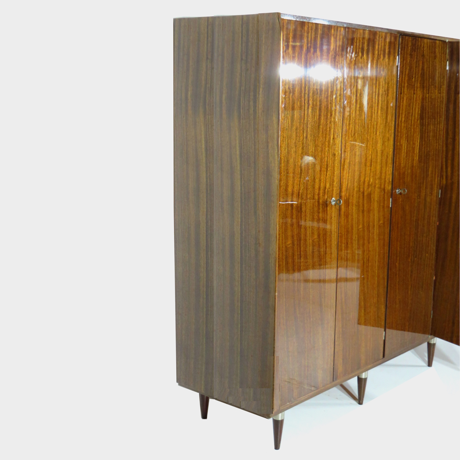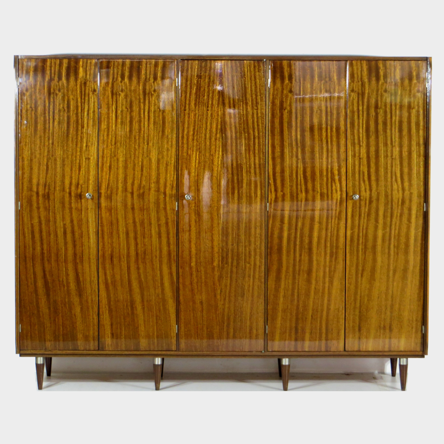 Vintage mid century modern 5-door wardrobe in rosewood from the 1960s. The wardrobe rests on eight stylish legs, is in very good condition and has minimal signs of use. The dimensions are as follows: