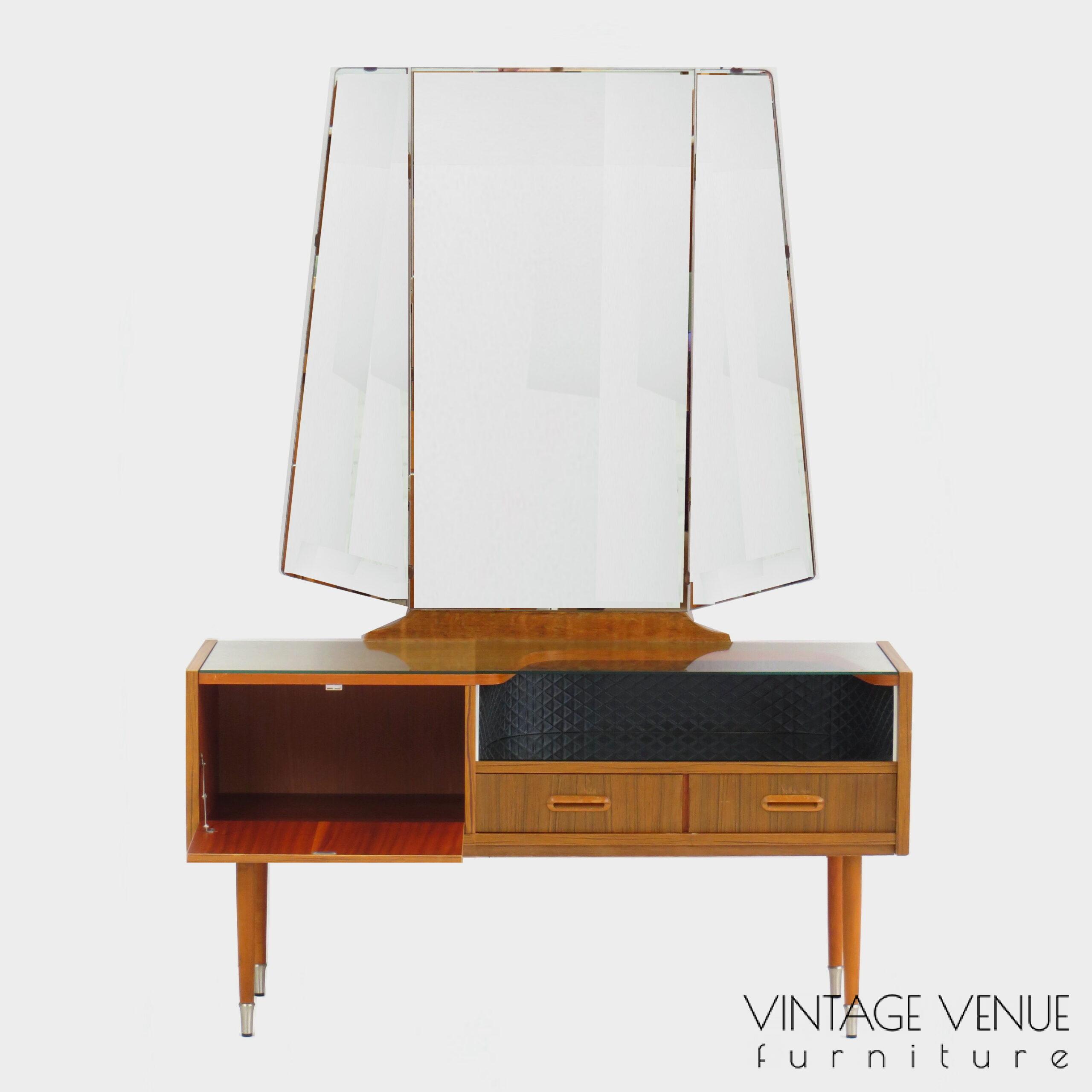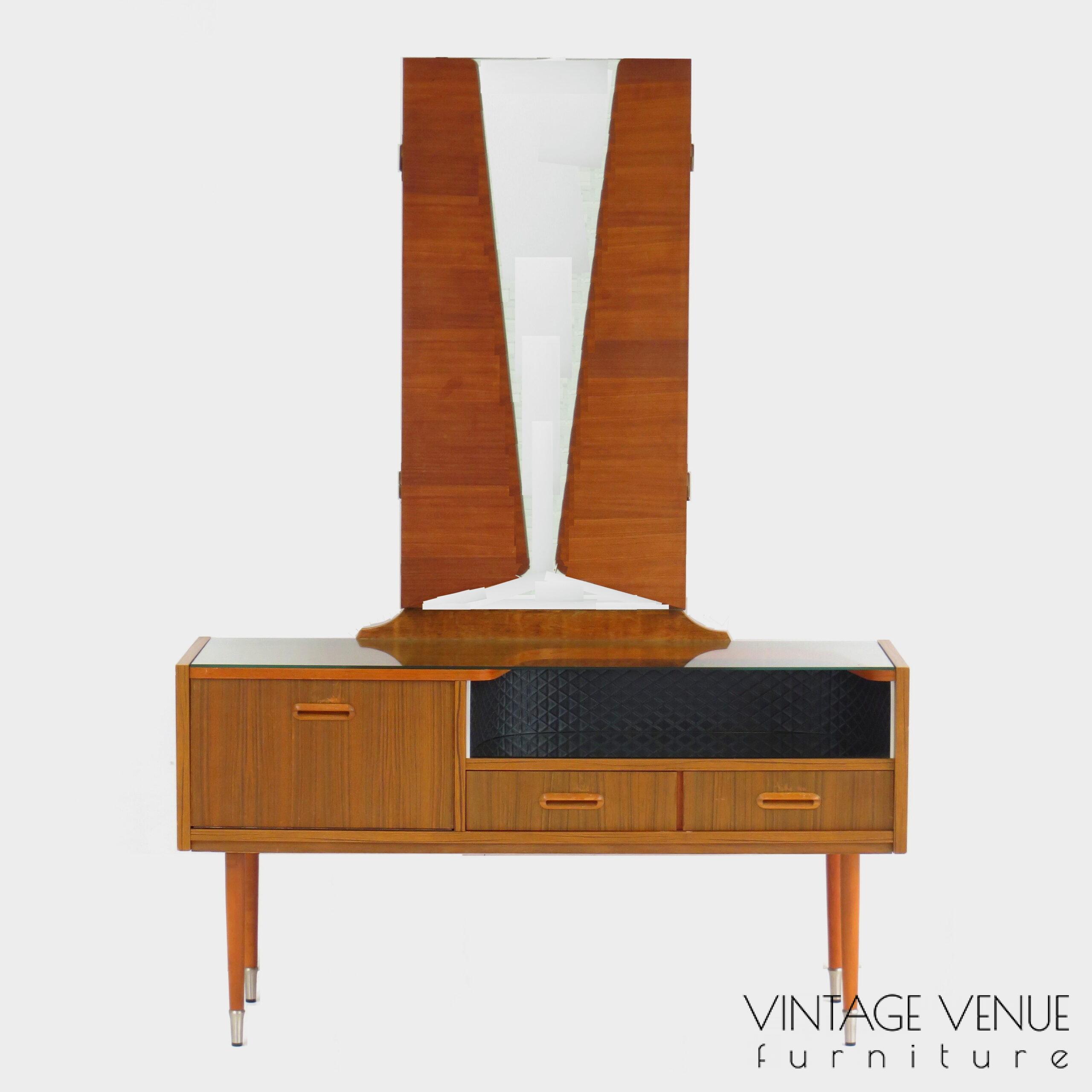 Vintage kaptafel dressoir van teak met spiegel